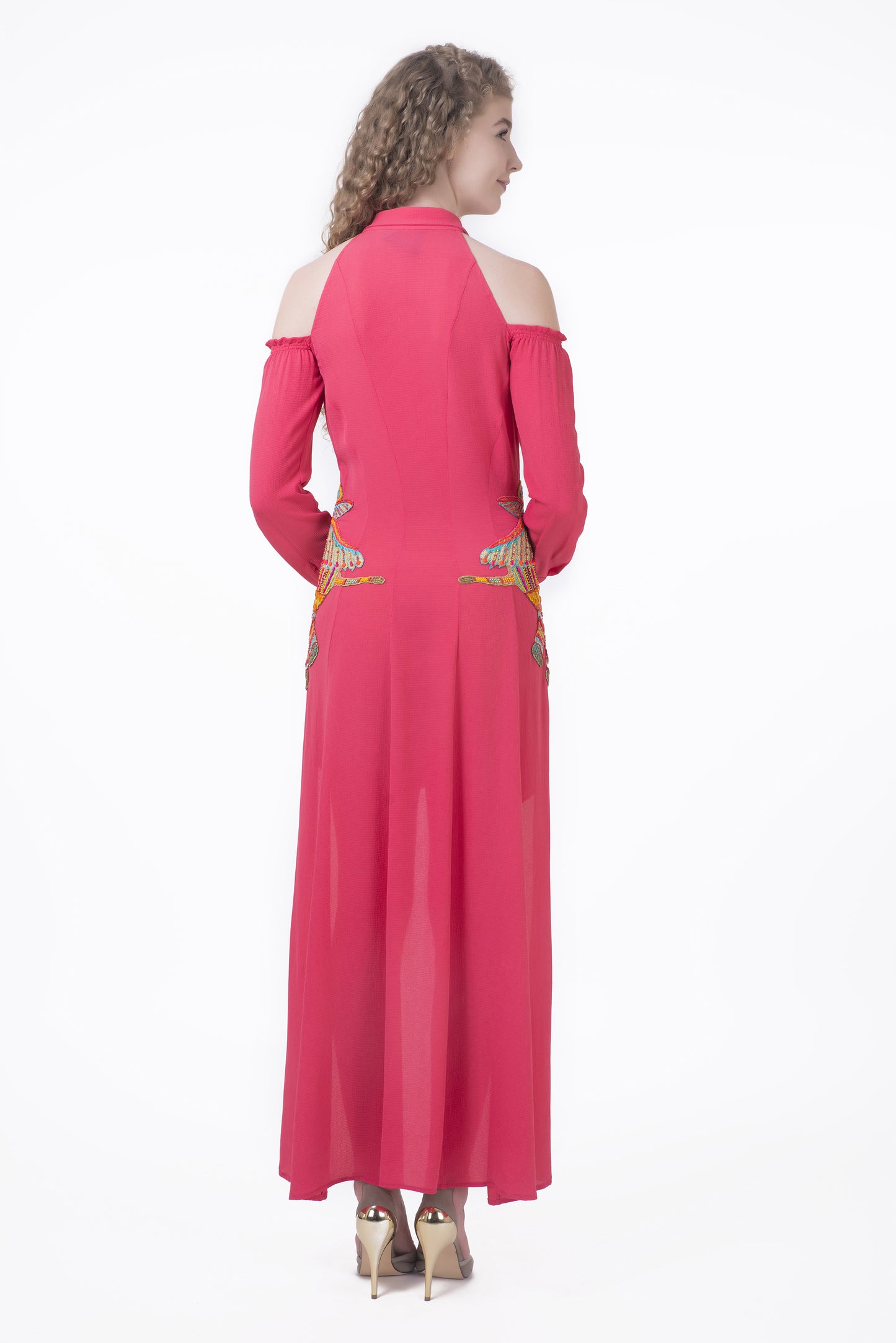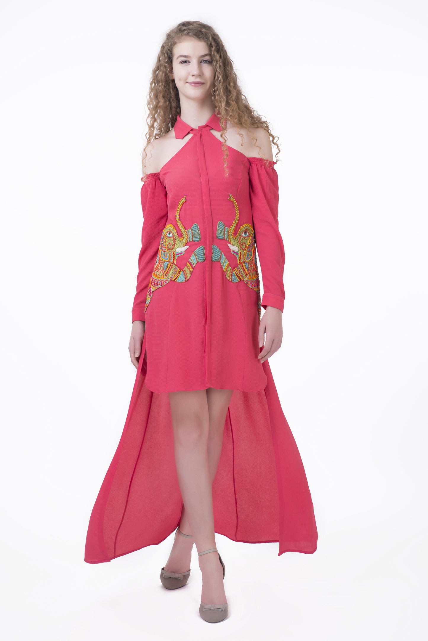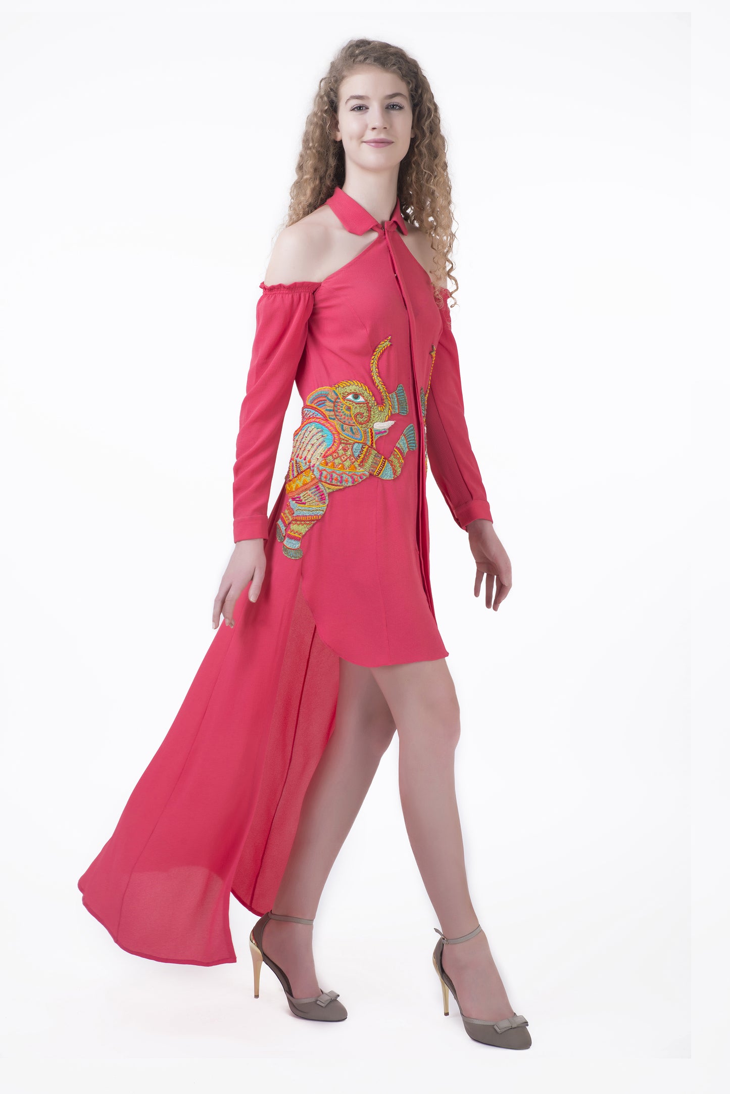 High-low georgette shirt with elephant motif embroidered on both sides with beads, threads and new-age techniques.